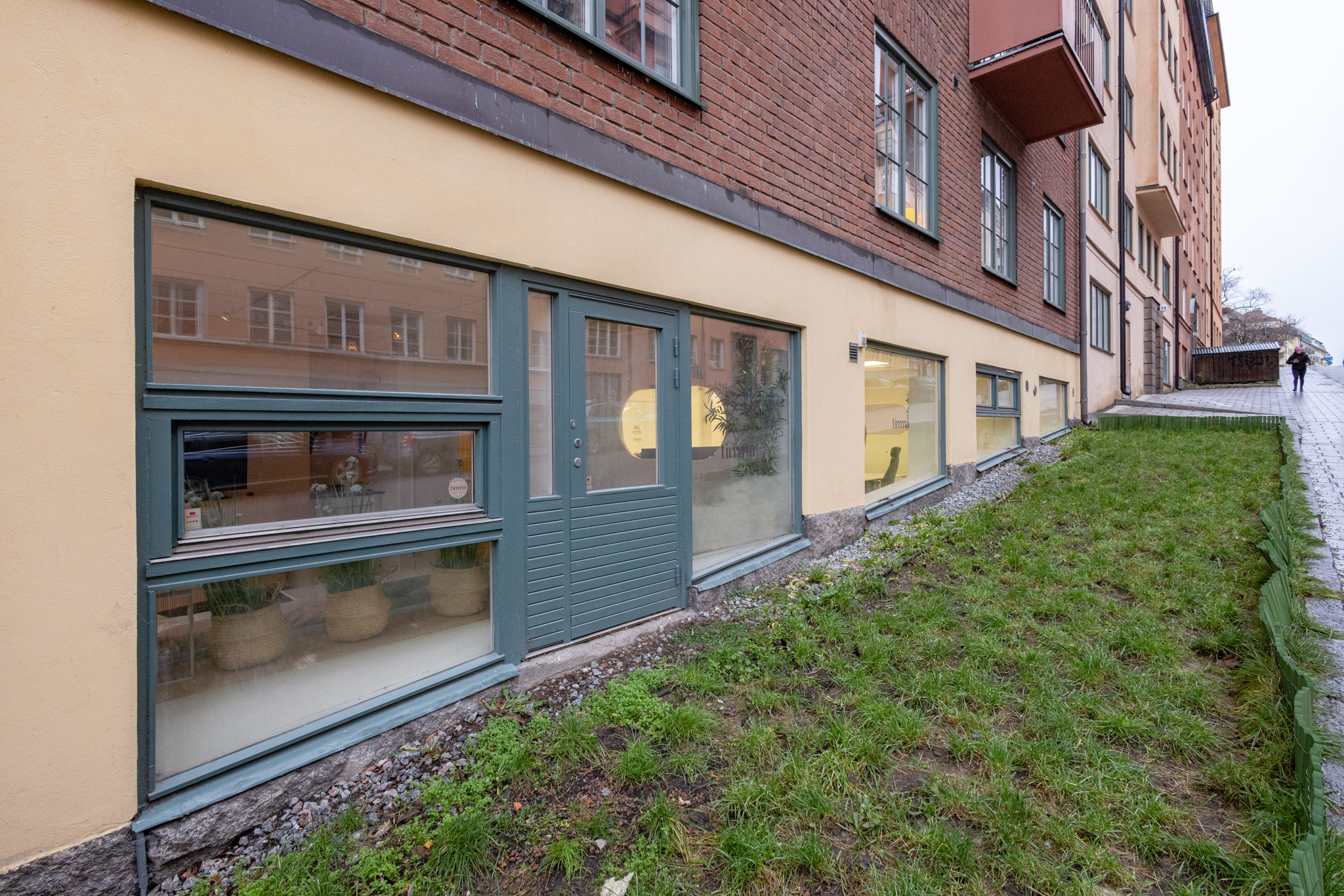 Idag nås lokalen via trapphuset, men det finns möjlighet att skapa en egen entré direkt mot gatan, vilket öppnar upp för butik, showroom eller annan publik verksamhet. Exponeringen är fantastisk och med fönster i flera väderstreck blir lokalen ljus och inbjudande hela dagen.