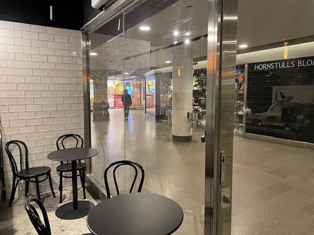 Vid en av Hornstulls mest trafikerade T-baneuppgångar hittar du denna inbjudande lokal med stora skyltfönster och bra exponeringsmöjligheter. Lokalen erbjuder även plats för några sittande gäster.