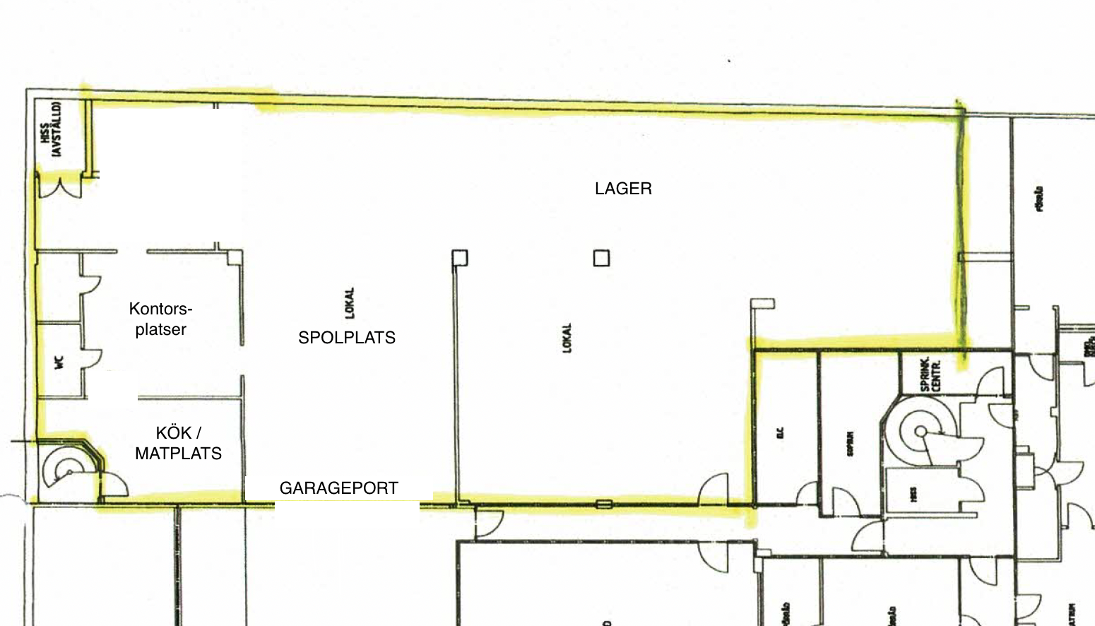 Infart till lokalen görs via en stor garageport. Lokalen har en öppen yta med ca 260 cm i takhöjd samt separat kontorsdel med wc och pentry. Moderna installationer som t ex god ventilation, tvättmöjligheter, laddplatser, fiberanslutning och sprinklers. Ytterligare lager om 40 kvm kan hyras. Tillträde omgående är möjligt. Ej verkstad.