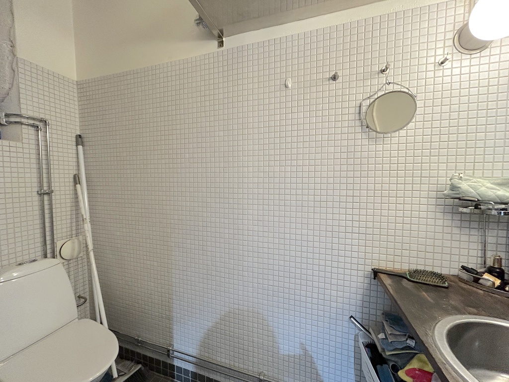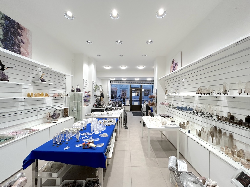 När man kliver in möts man av en öppen och inbjudande yta som med några trappsteg längre in leder till ett ännu större rum. Den nuvarande planlösningen med en vägg som delar rummet kan enkelt förändras till en mer enhetlig yta om man vill ha ett större öppet utrymme. Lokalen har även ett stort takfönster med frostat glas som släpper in ett mjukt ljus och förstärker känslan av rymd.