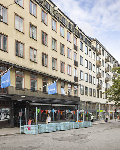 Lokalen ligger en halv trappa ned med egen entré från Dalagatan och omfattar 94 kvm fördelade på kontor/butiksdel mot gatan samt lager/kontor. Entrén är ljus med två fönster mot Dalagatan.