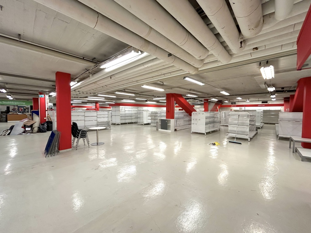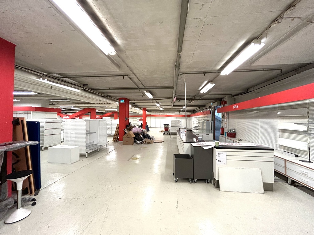 Här erbjuds en rymlig och ljus lokal om totalt ca 1 100 kvm, varav cirka 200 kvm har generös takhöjd som skapar extra rymd och flexibilitet. Lokalen är belägen i källarplan men erbjuder god tillgänglighet och stora möjligheter för många typer av verksamheter. Den har tidigare använts som butik och lager, men kan idag anpassas för flera andra verksamheter. Observera att servering eller restaurangverksamhet inte är tillåten.