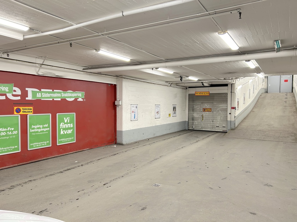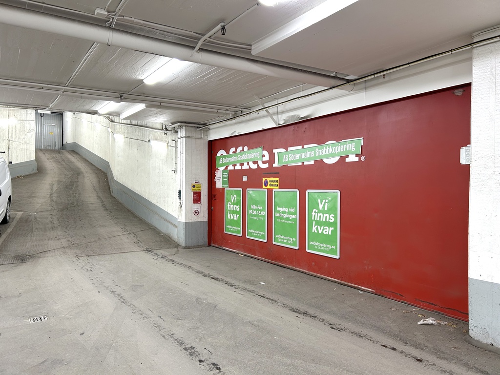 Lokalen har två separata garageentréer med bilnedfart, nås smidigt från både Åsögatan och Bondegatan. Garage finns under fastigheten och underlättar logistik, in- och urlastning. Det finns även möjlighet att hyra upp till tre parkeringsplatser i direkt anslutning till lokalen.