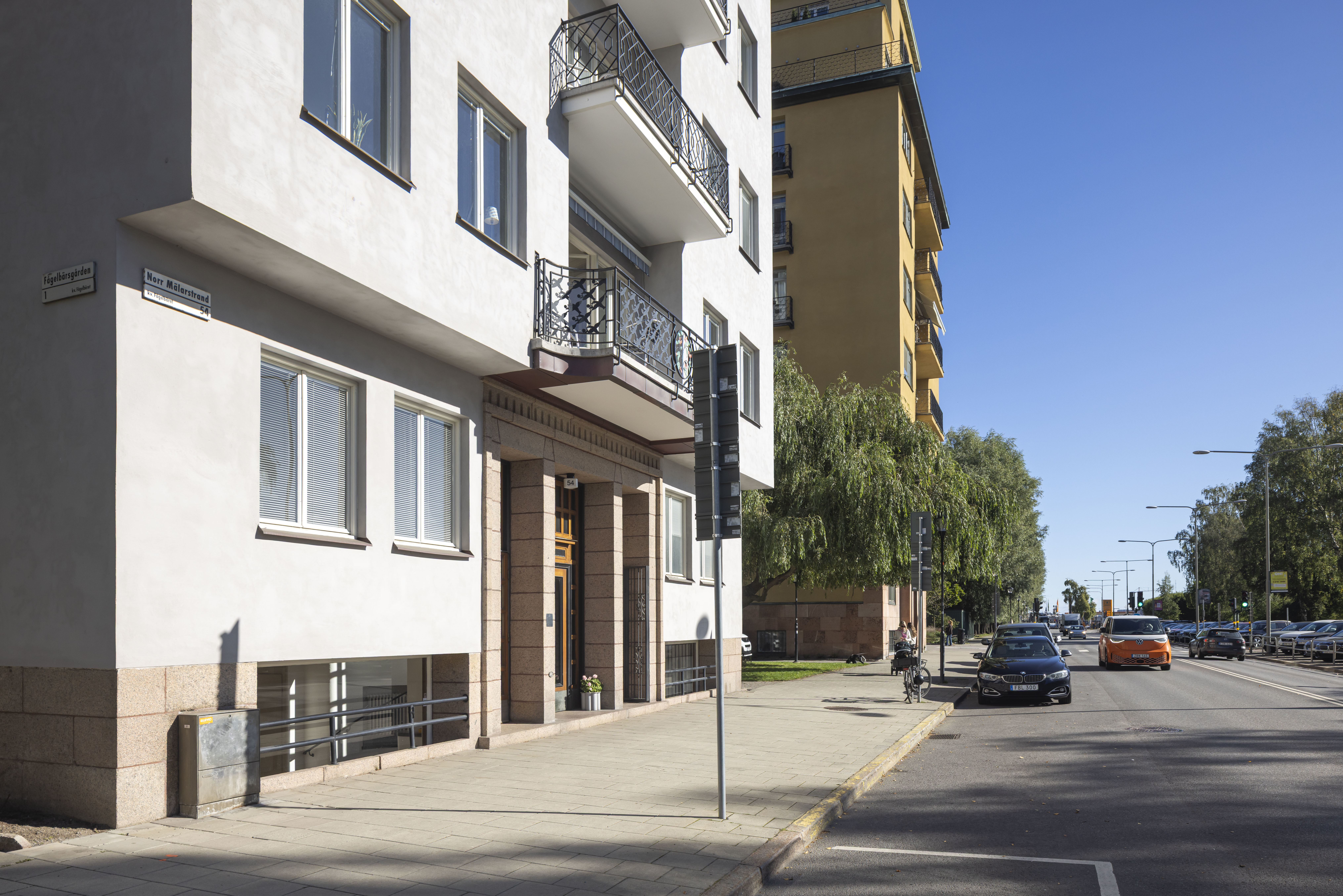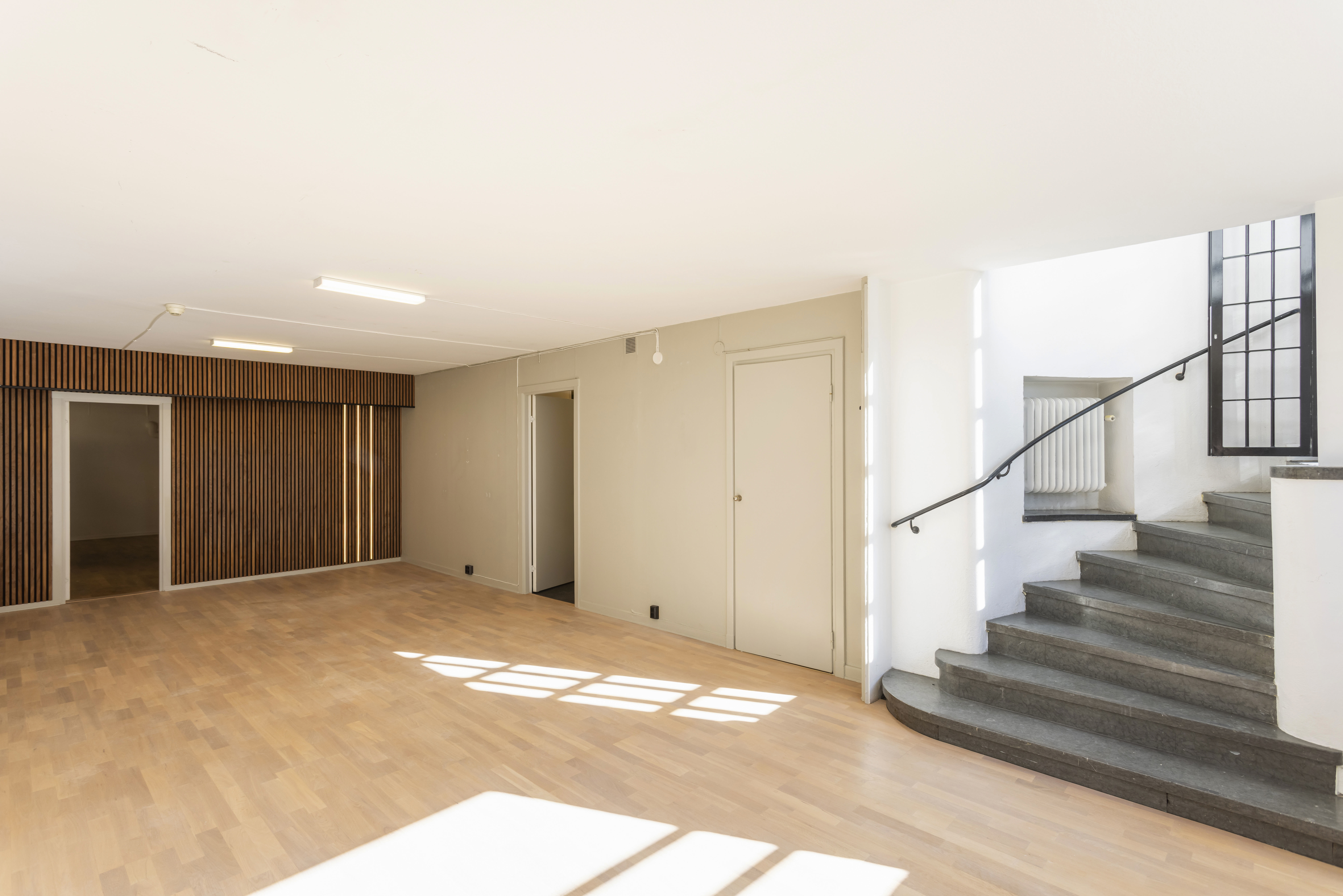 Lokalen är ljus och inbjudande och fördelad på två rum med genomgående parkettgolv. En vacker stentrappa leder ner till entrén som ger ett välkomnande intryck, och det stora skyltfönstret mot Norr Mälarstrand släpper in rikligt med dagsljus samtidigt som det erbjuder en attraktiv exponering. Båda rummen har även fönster mot gården, vilket ytterligare förstärker ljusinsläppet och bidrar till en trivsam arbetsmiljö.