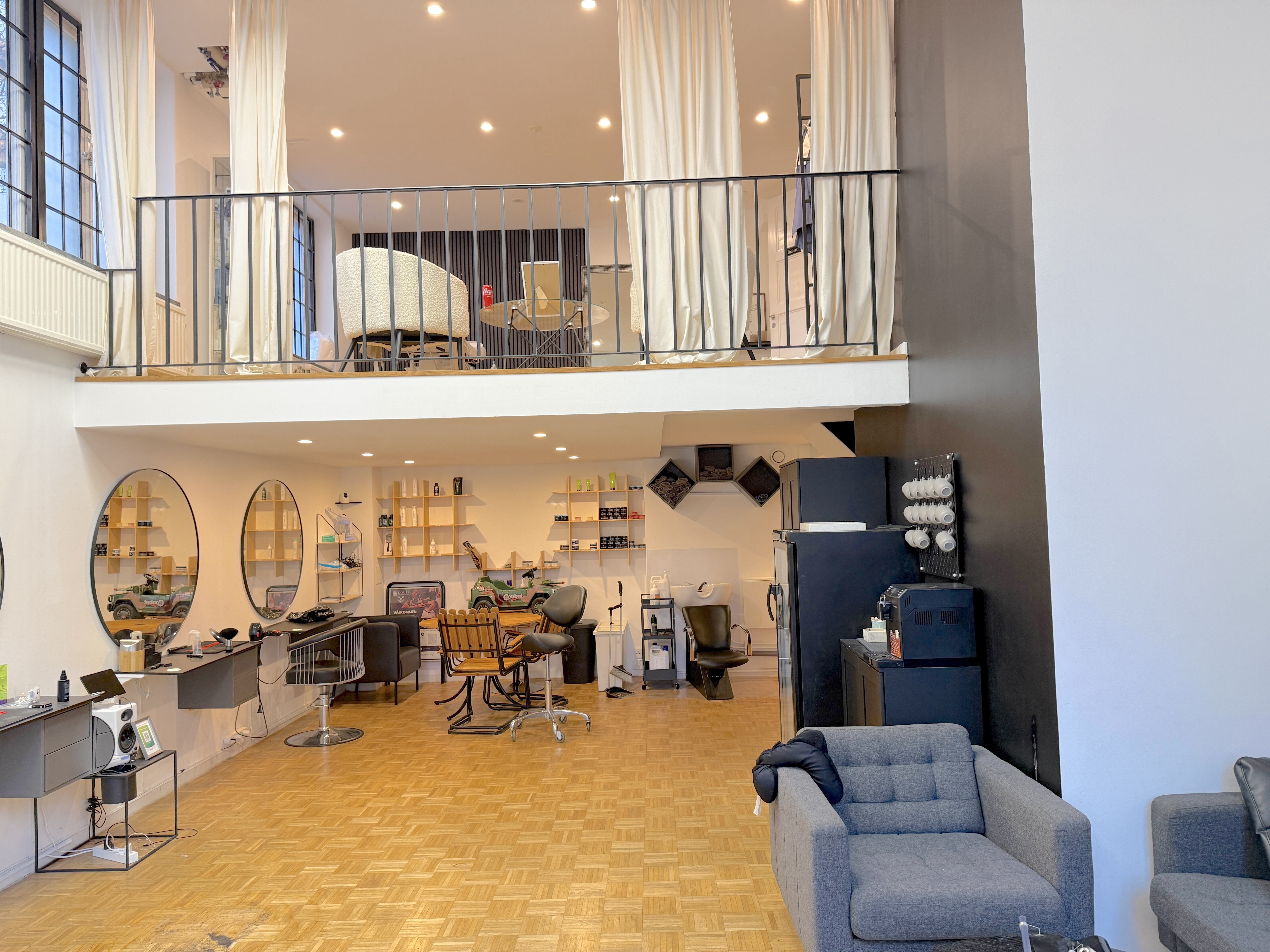 Lokalen används för närvarande som en frisör men passar även utmärkt som ett showroom, kontor, butik eller verksamhet inom skönhet.