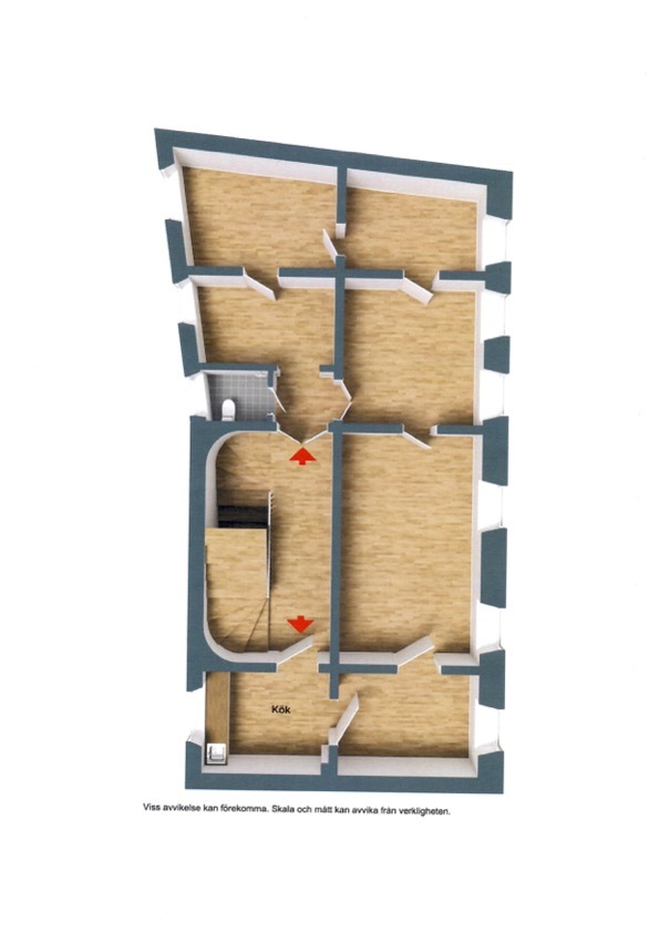 Samtliga rum är genomgångsrum.