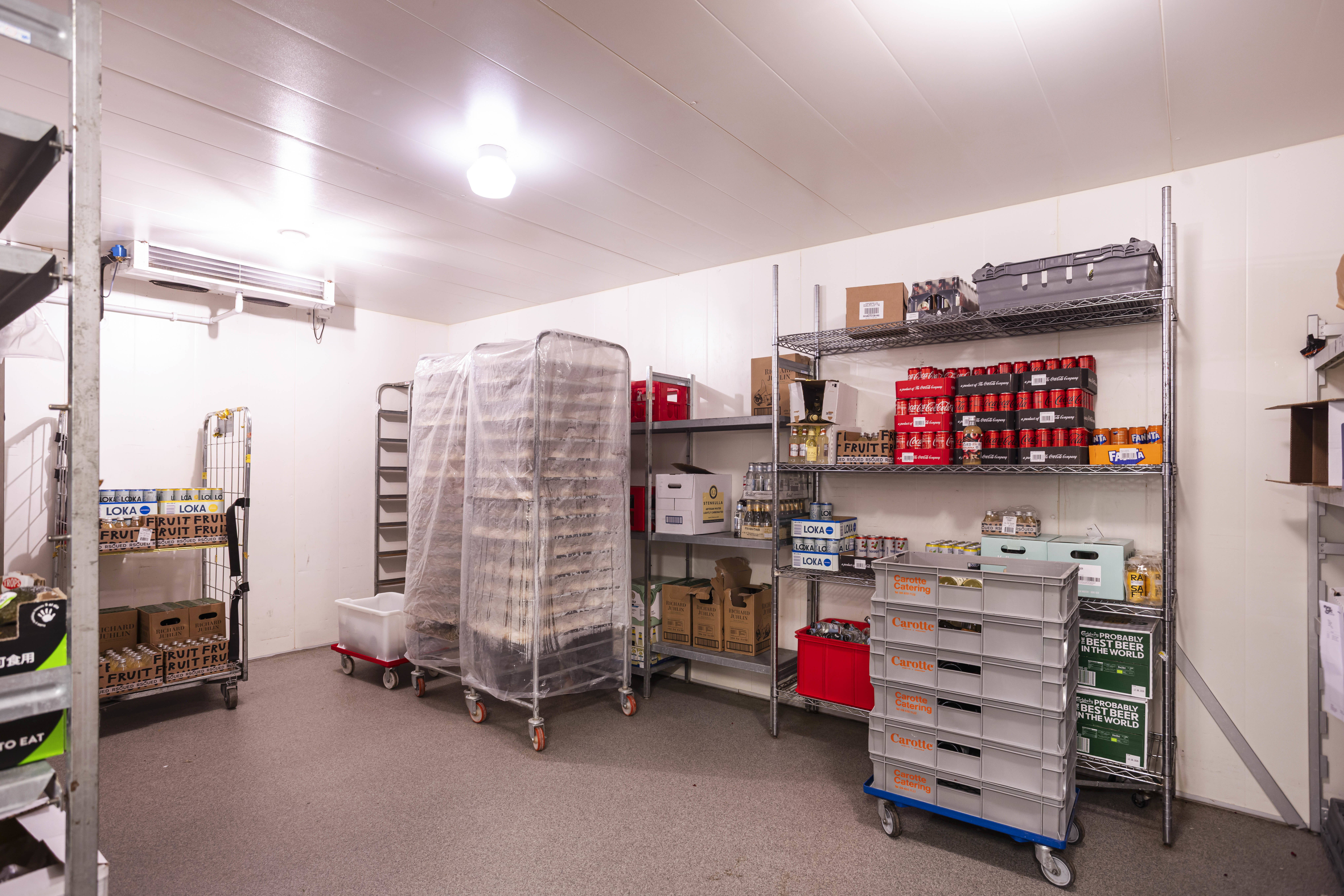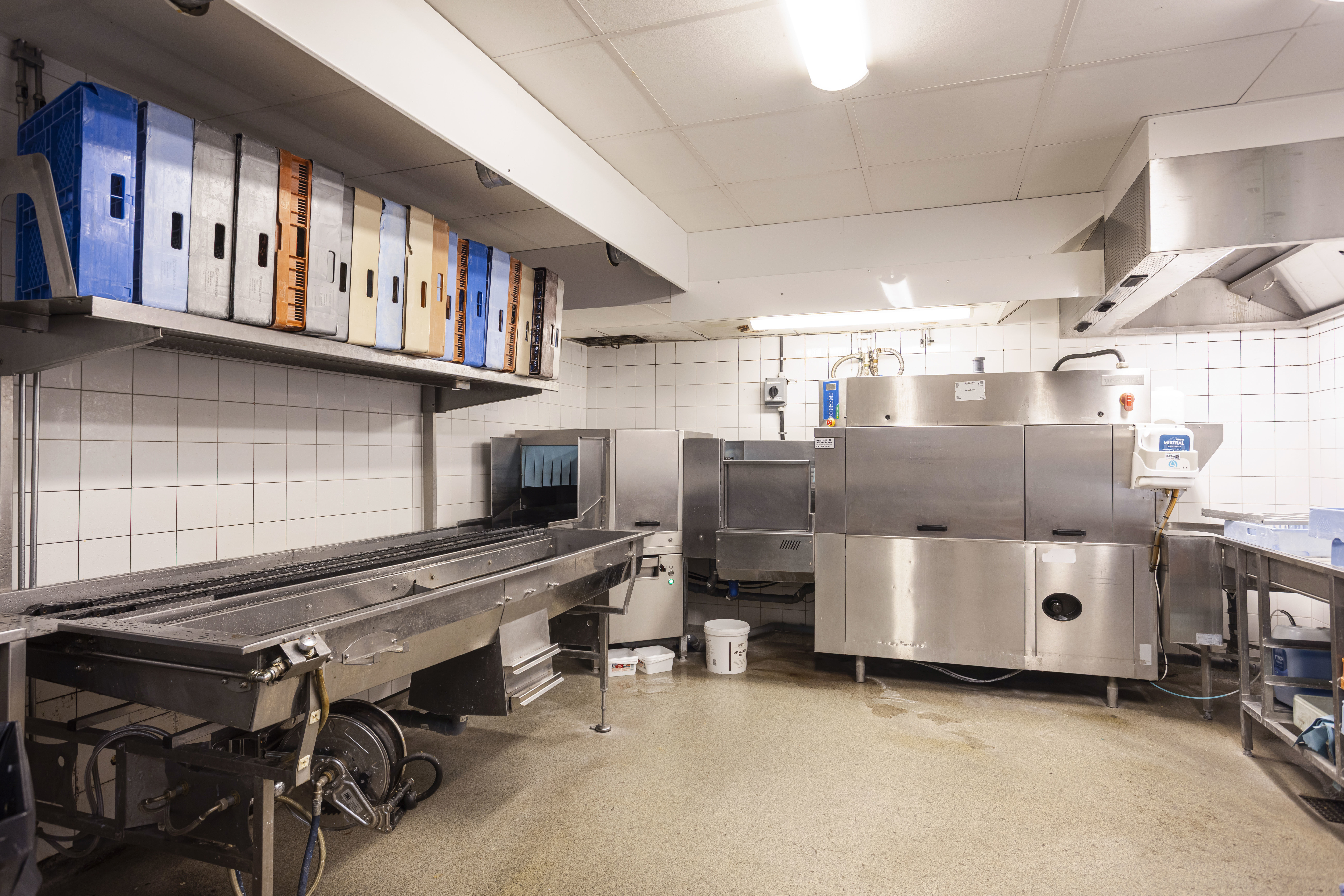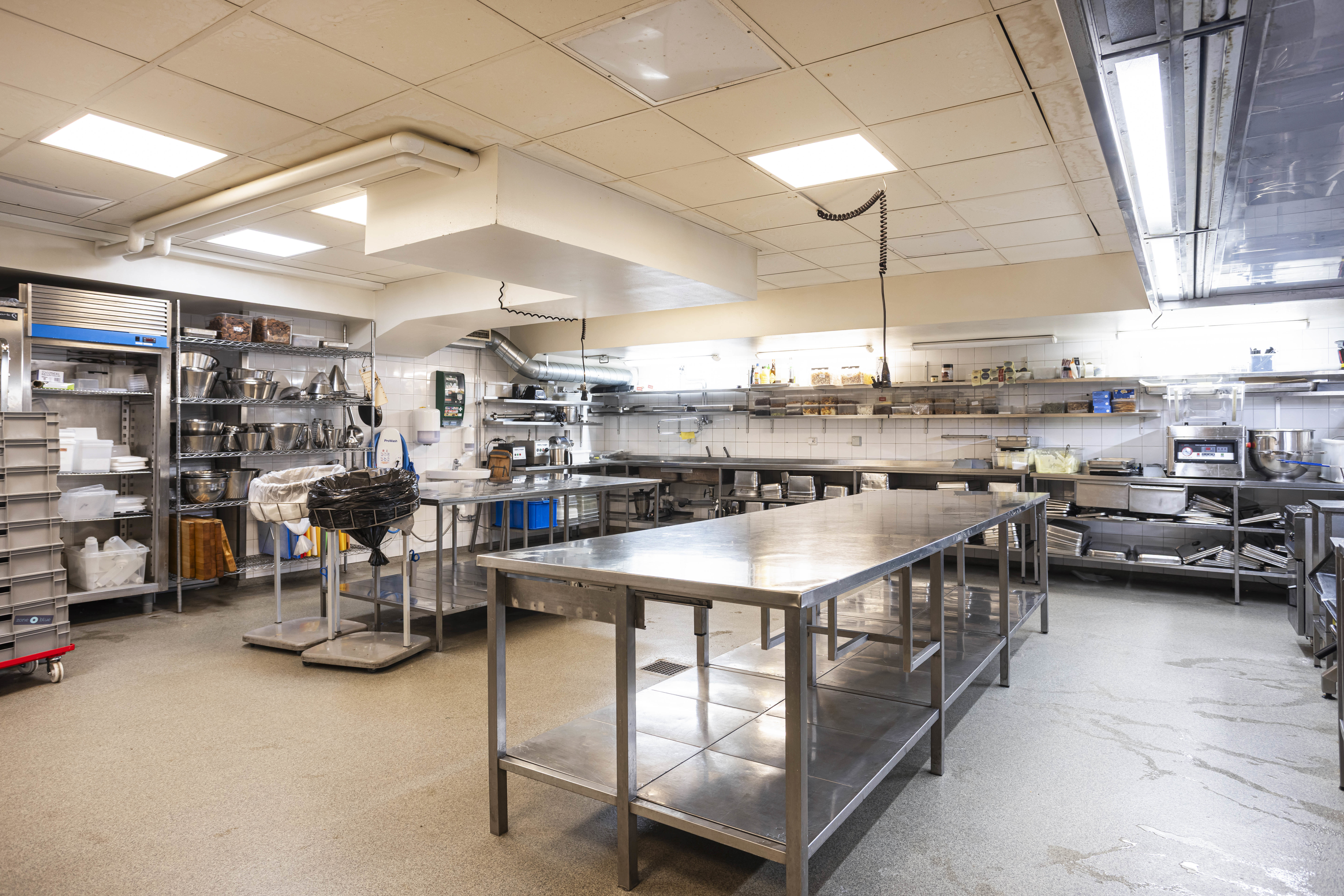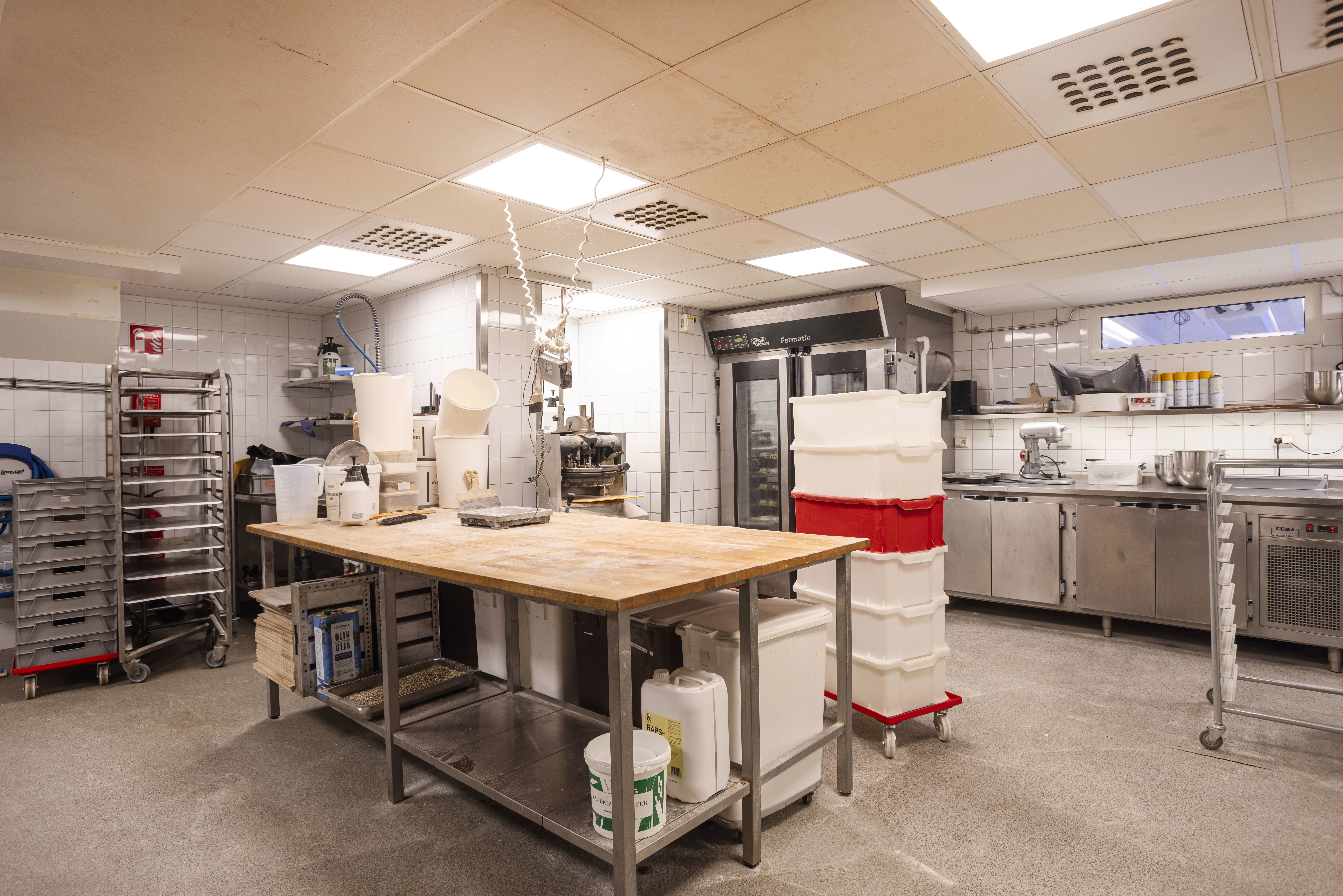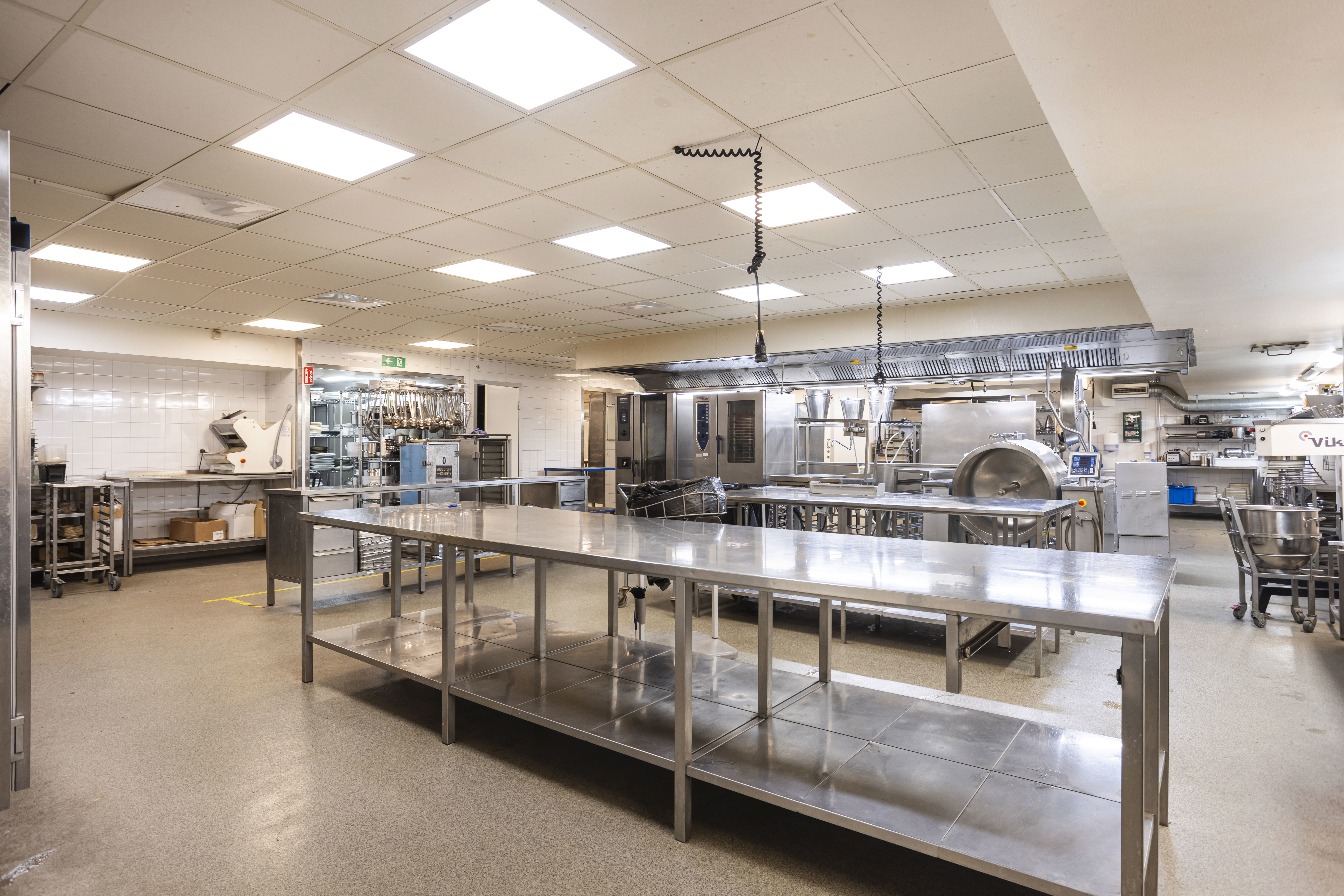 Lokalen är anpassad för storvolymsproduktion. Köket är fullt utrustat med professionella maskiner avsedda för höga volymer och effektiv drift. Här finns även ett separat bageri, vilket ger stor flexibilitet för catering, produktion och vidareförädling.