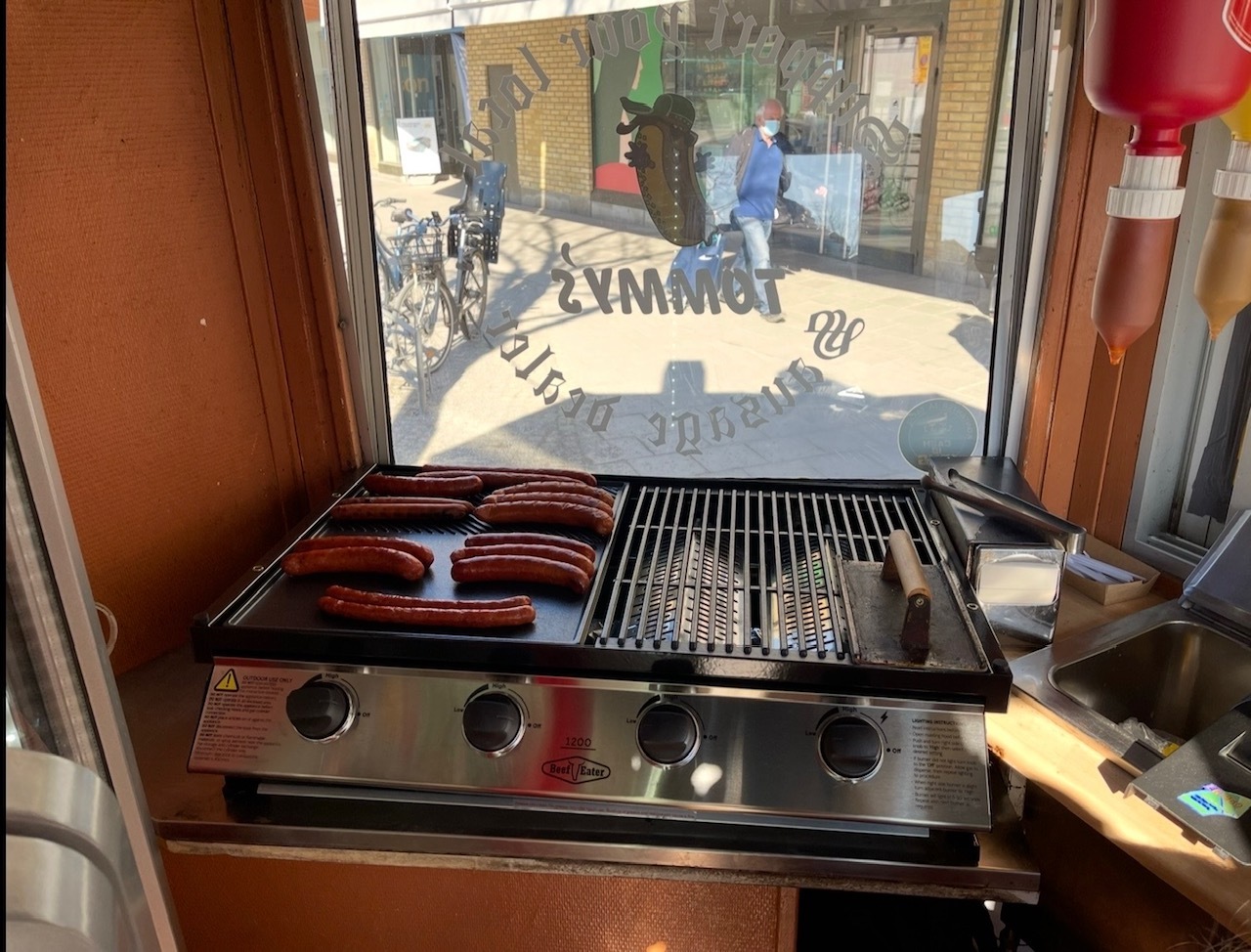 Varje kiosk är utrustad med all utrustning som krävs för en fungerande korvkiosk.